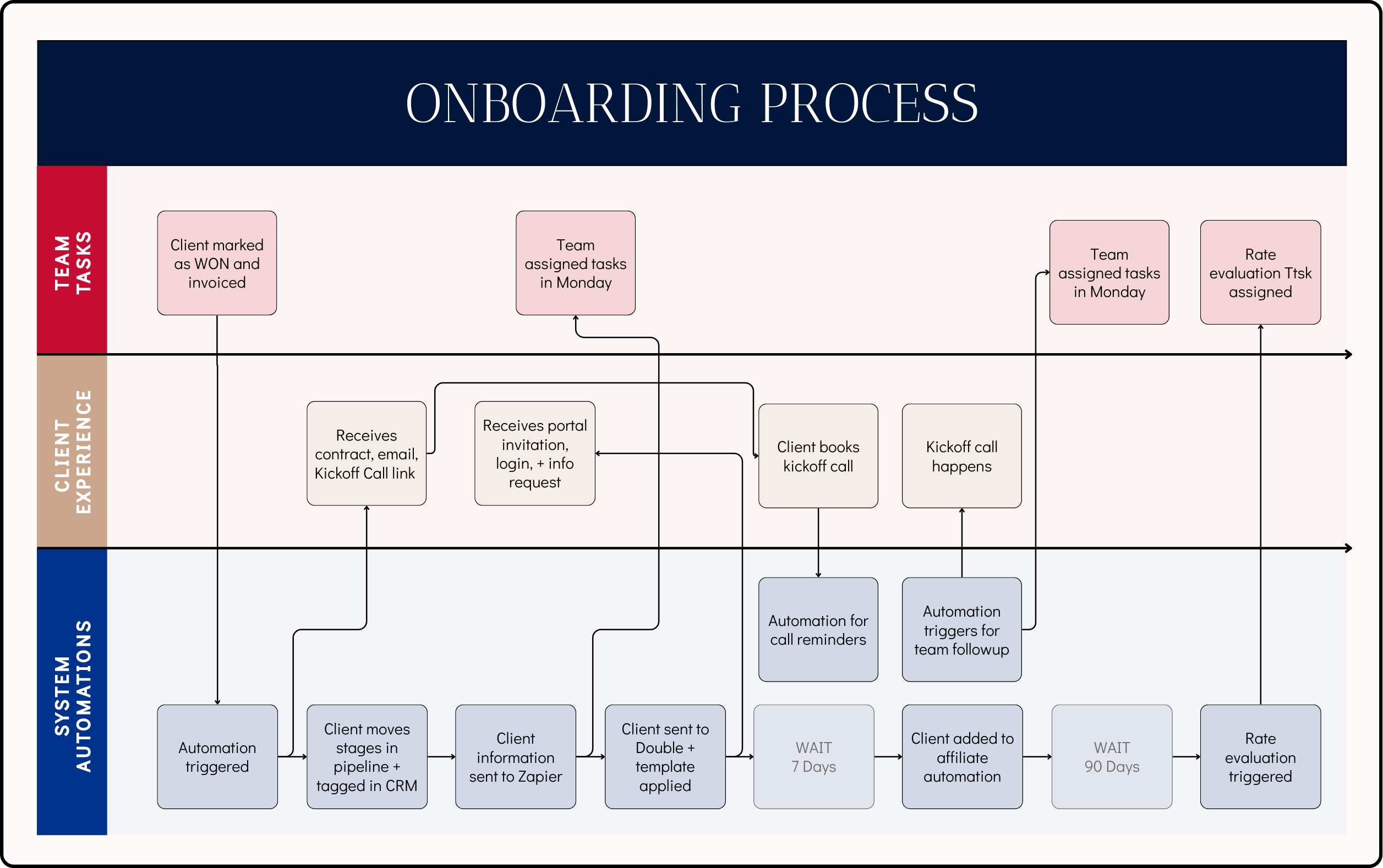 Mapped the full client lifecycle across lead intake, onboarding, document collection, and recurring service delivery.