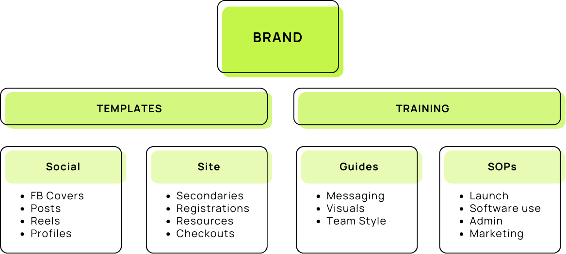 Developed brand systems, launch kits, website and campaign templates, and client-facing asset libraries for long-term reuse.